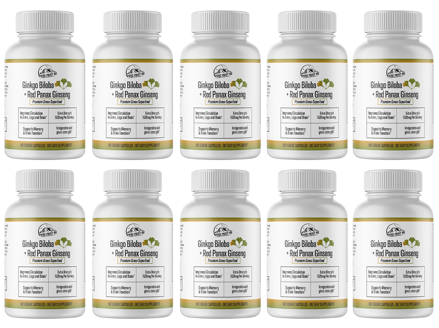 Ginkgo Biloba+Red Panax Ginseng Premium Green Superfood -10 Bottles 600 Capsules