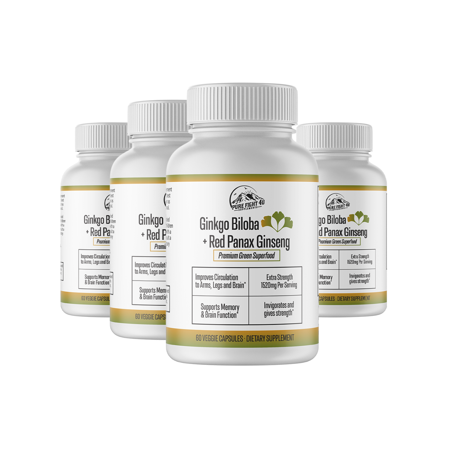 Ginkgo Biloba+Red Panax Ginseng Premium Green Superfood - 4 Bottles 240 Capsules