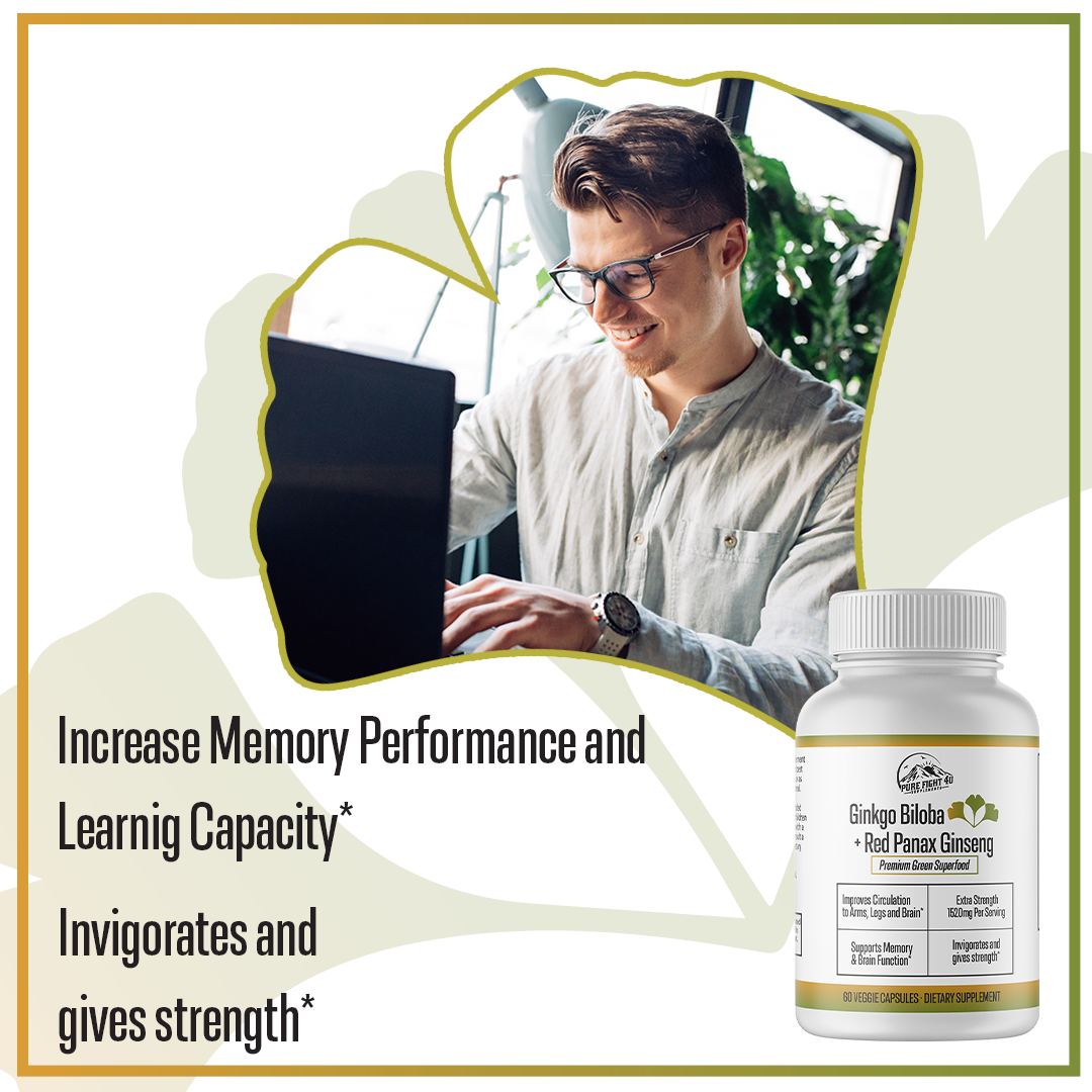 Ginkgo Biloba+Red Panax Ginseng Premium Green Superfood - 5 Bottles 300 Capsules