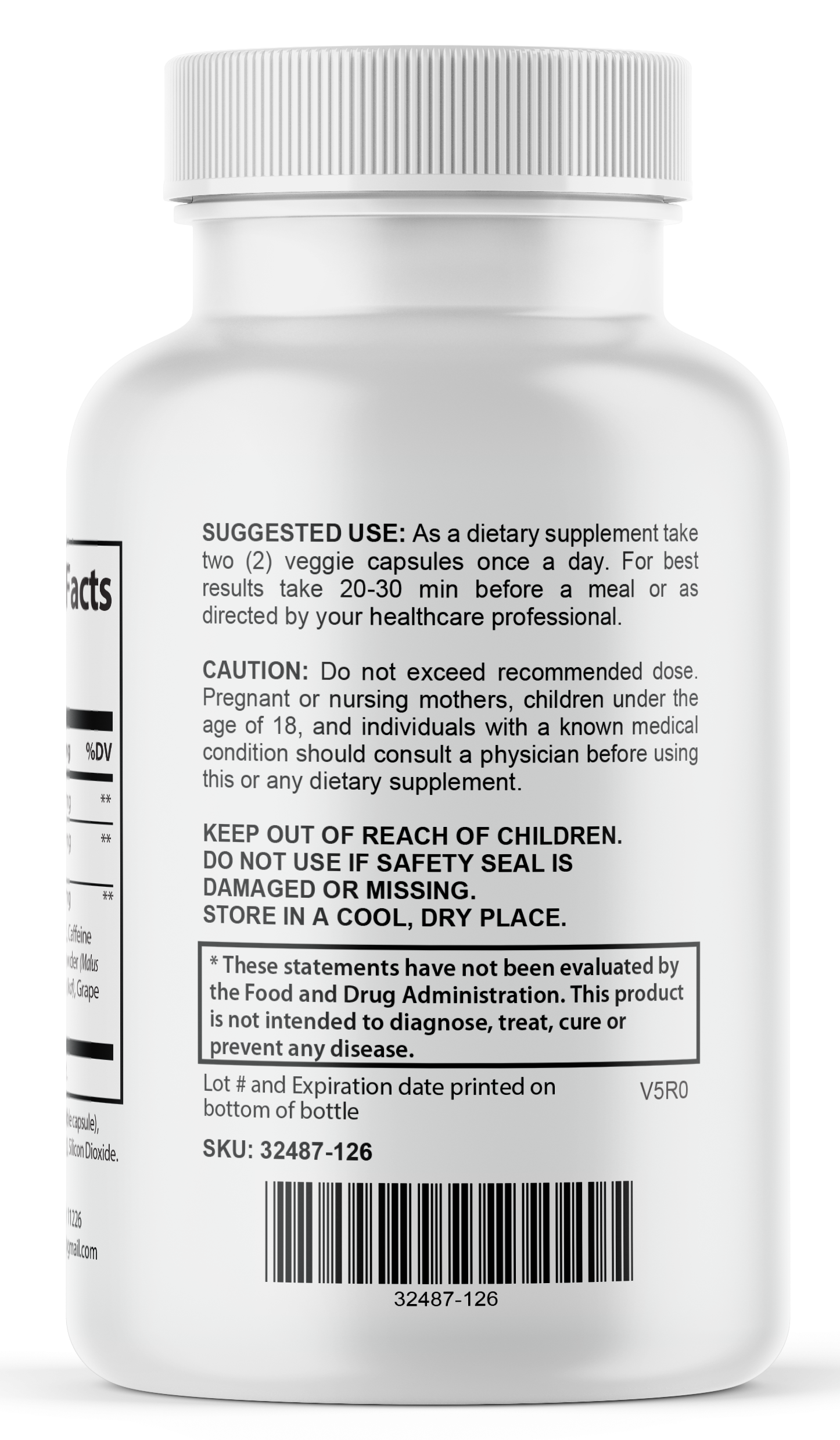 A dietary supplement made with a blend of natural ingredients to help support metabolism and overall wellness. Each serving combines raspberry ketones, African mango, and a proprietary mix of green tea extract, apple cider vinegar powder, caffeine, grape extract, and more.