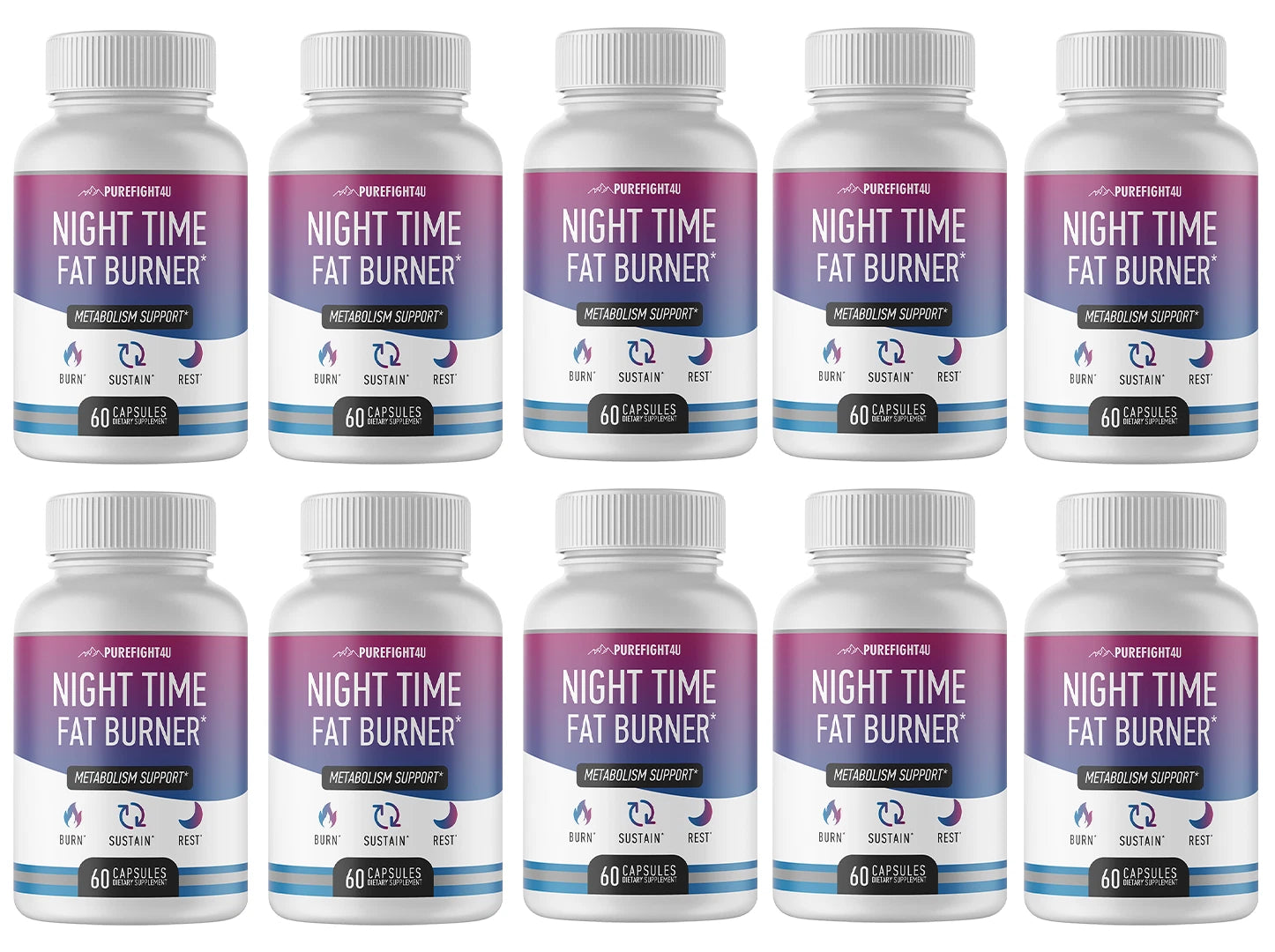 Night Time Fat Burner - Metabolism Support - 10 Bottles 600 Capsules
